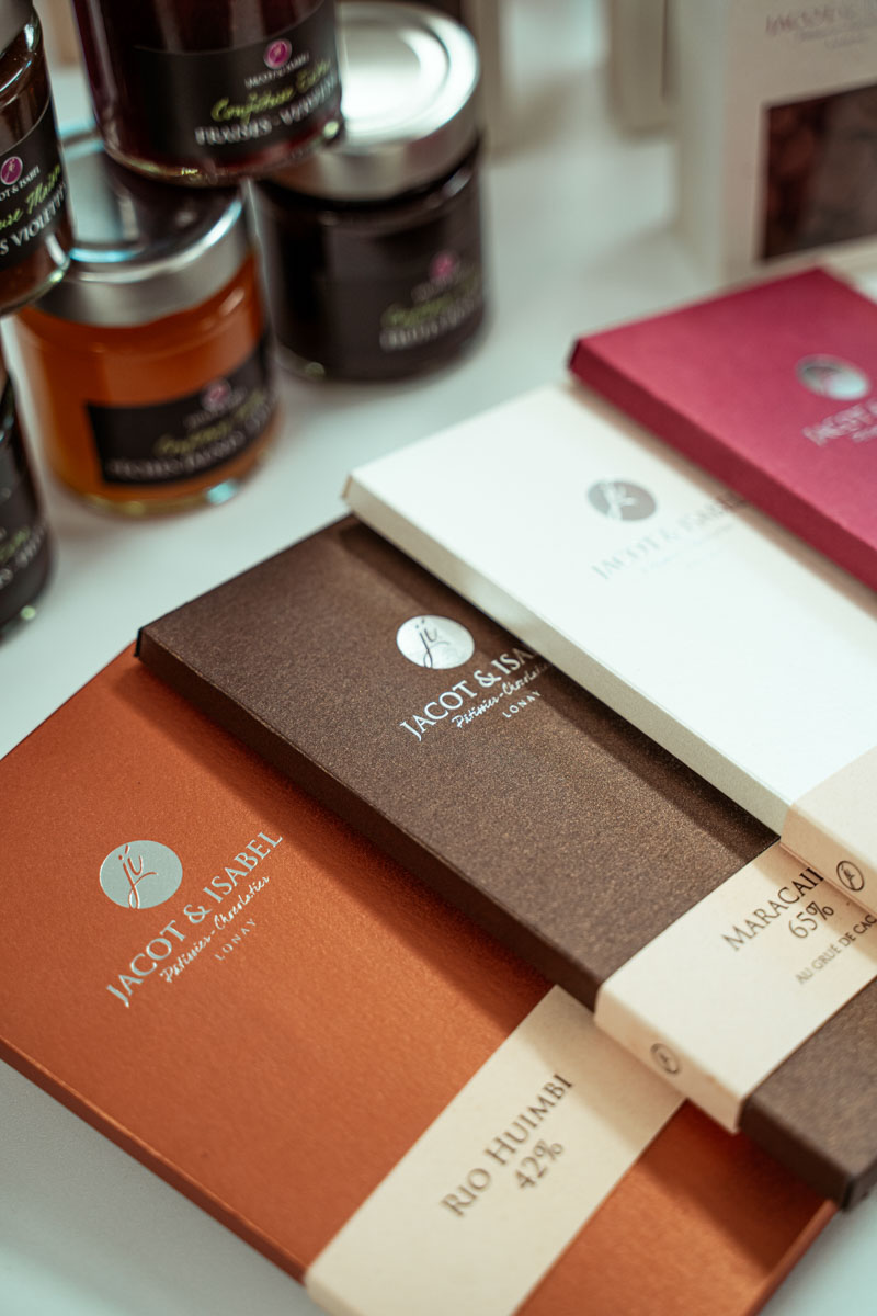 Voir l’offre : une page d’accueil immédiatement explicite, où les trois univers (boulangerie, pâtisserie, chocolaterie) s’ouvrent comme des étals, avec des textes courts et utiles. Jacot & Isabel